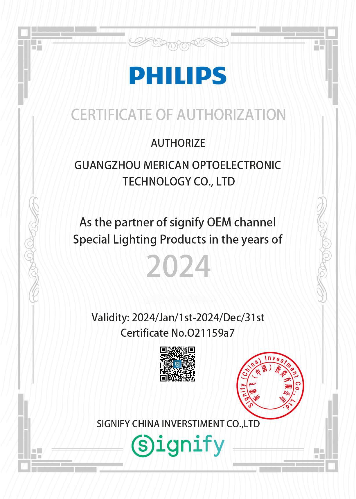 飞利浦授权证书